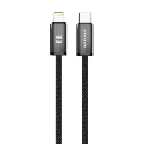 كابل من نوع Type-C وLightning من Porodo، مع تغليف مضفر.